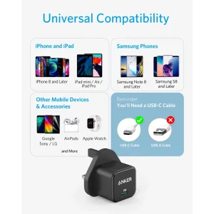 • Wall Anker PowerPort III 1port USB-C PD (20W) -A2149K11